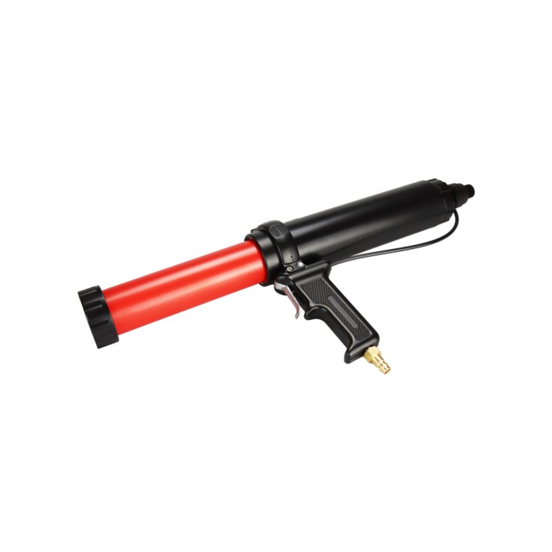 Compressed-air cartridge press with a piston driven rod function. Removable front tube. For materials with high viscosity.